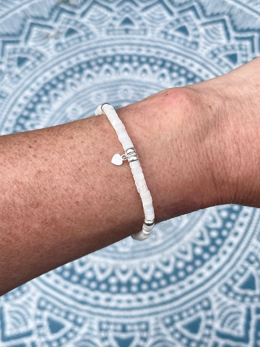 White Shell and Turquoise Stone Necklace with Lotus Charm