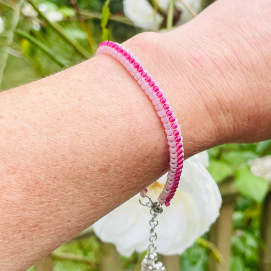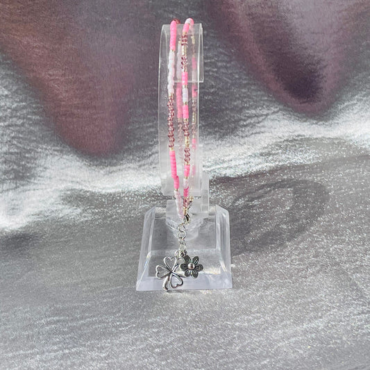 Crystal and glass beaded bracelet with Daisy and Clover charms (Baby Pink and Rose Pink)