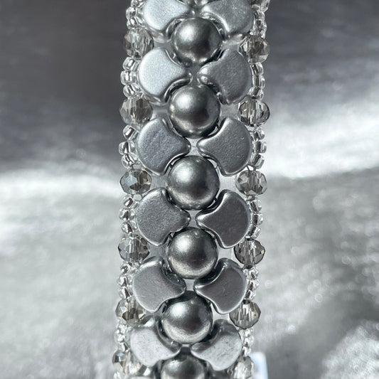 Crystal and Glass Beaded Bracelet with Daisy and Clover Charms (Silver and Black)