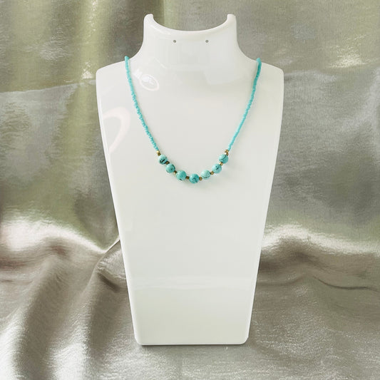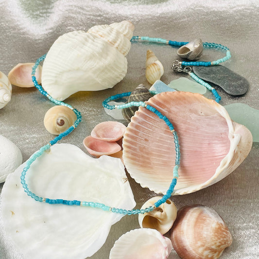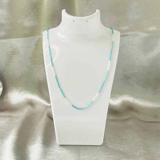 Seed and Crystal Bead Necklace (Teal and Light Blue)