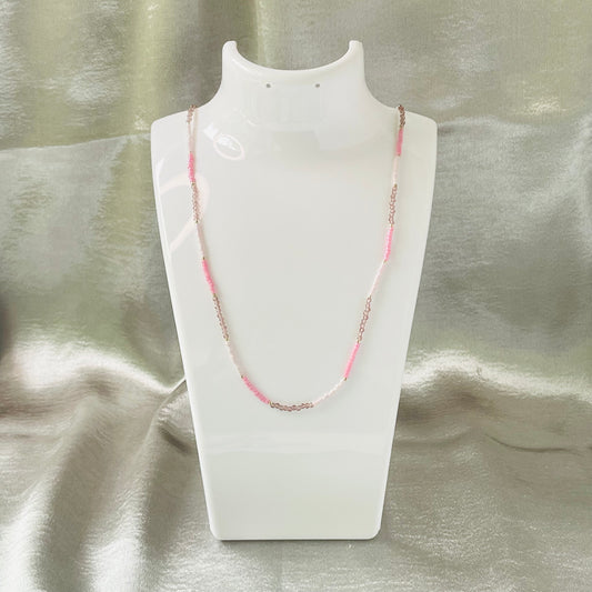 Double layer glass and crystal bead and chain bracelet (Pink)