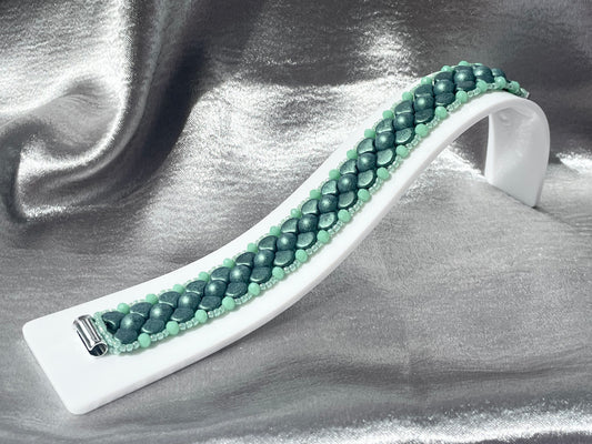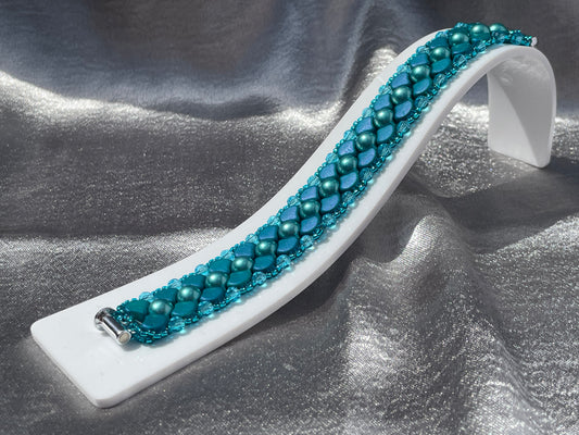 Crystal and Glass Pearl Spiral Bracelet (Teal)