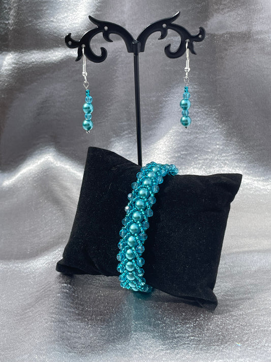 Crystal and Glass Pearl Bead Earrings (Teal)